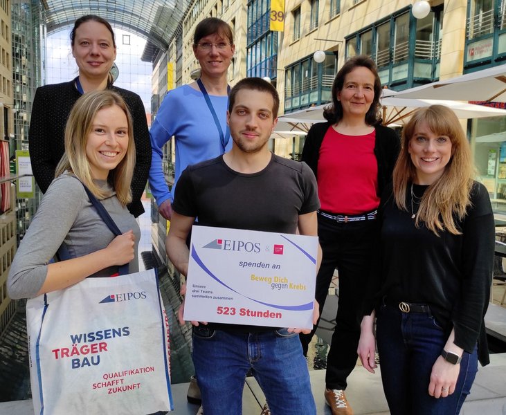 Einen Monat lang haben wir fleißig Bewegungszeit für die Benefizaktion "Beweg dich gegen Krebs" gesammelt. Mit Fahrradfahren, Inlineskaten oder Walken haben drei EIPOS-Teams insgesamt 523 Bewegungsstunden erreicht. Eines unserer Teams schaffte sogar den Sprung aufs Treppchen und sicherte sich den 2. Platz in der Gesamtwertung!